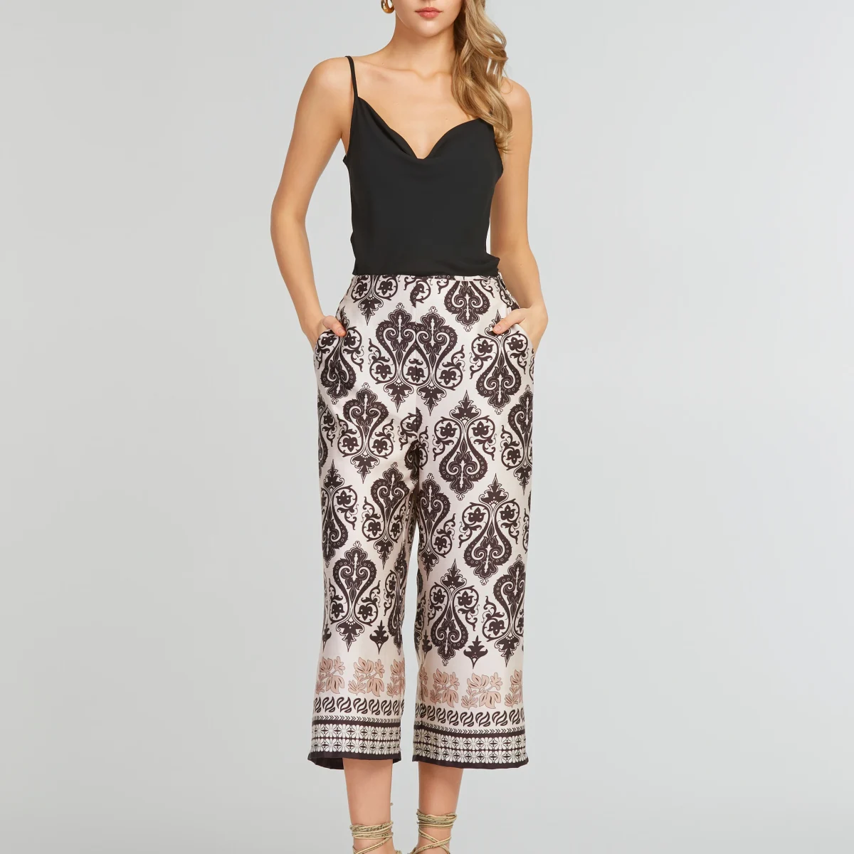 Εμπριμέ παντελόνι με σατέν όψη LYNNE SS25