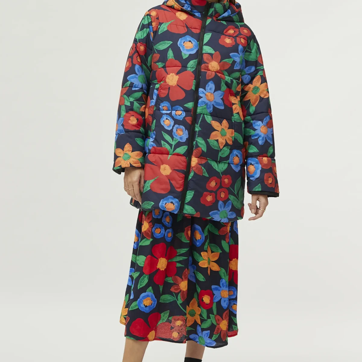 Πολύχρωμο καπιτονέ παλτό με φλοράλ στάμπα COMPANIA FANTASTICA