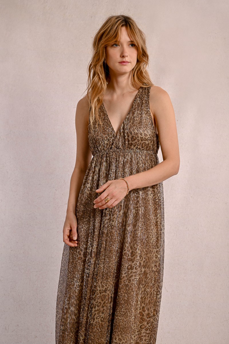 -Long leopard dress