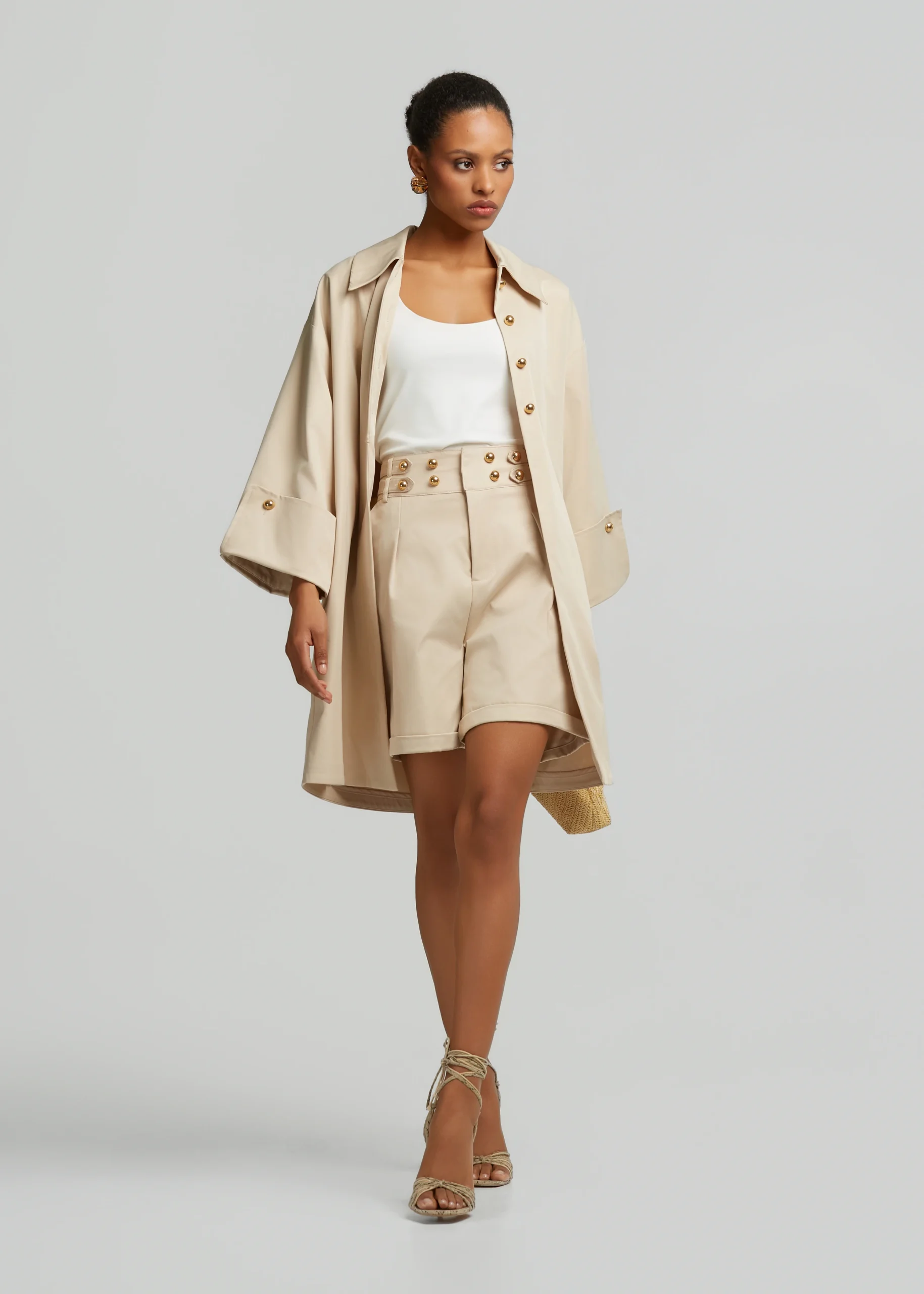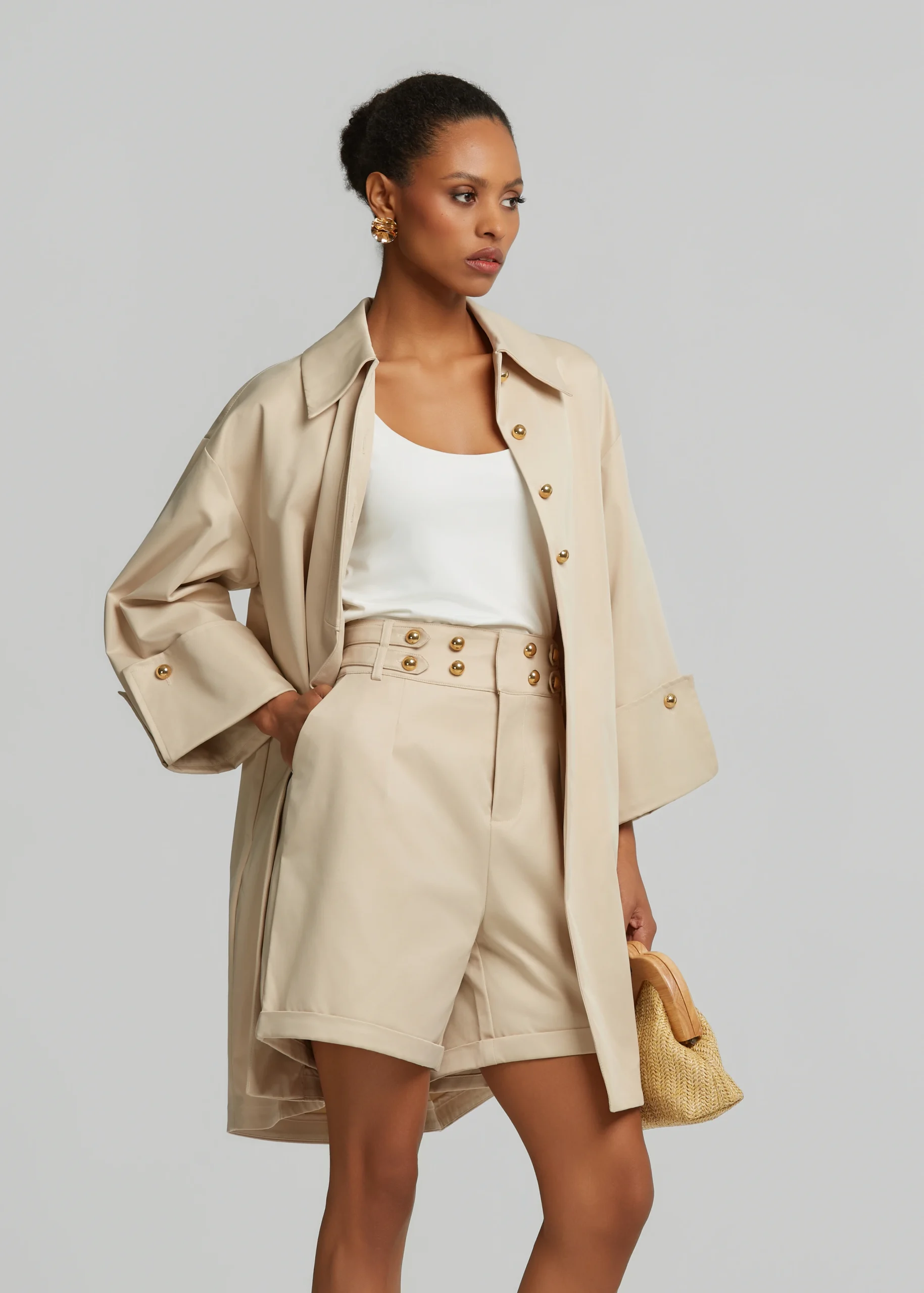 - Clos trench coat with bold buttons and side pockets
