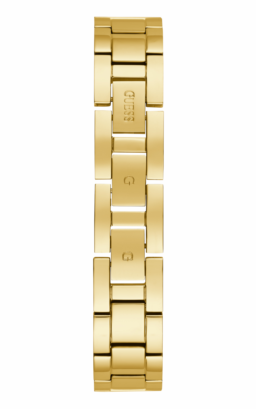 Women’s watch with a diameter of 32mm, with a precision QUARTZ mechanism. It has a gold dial, gold hands and details. Its gold stainless steel case with specially hardened mineral crystal. It has a golden stainless steel bracelet decorated with crystals and a G-LINK clasp. It is waterproof (3 ATM).