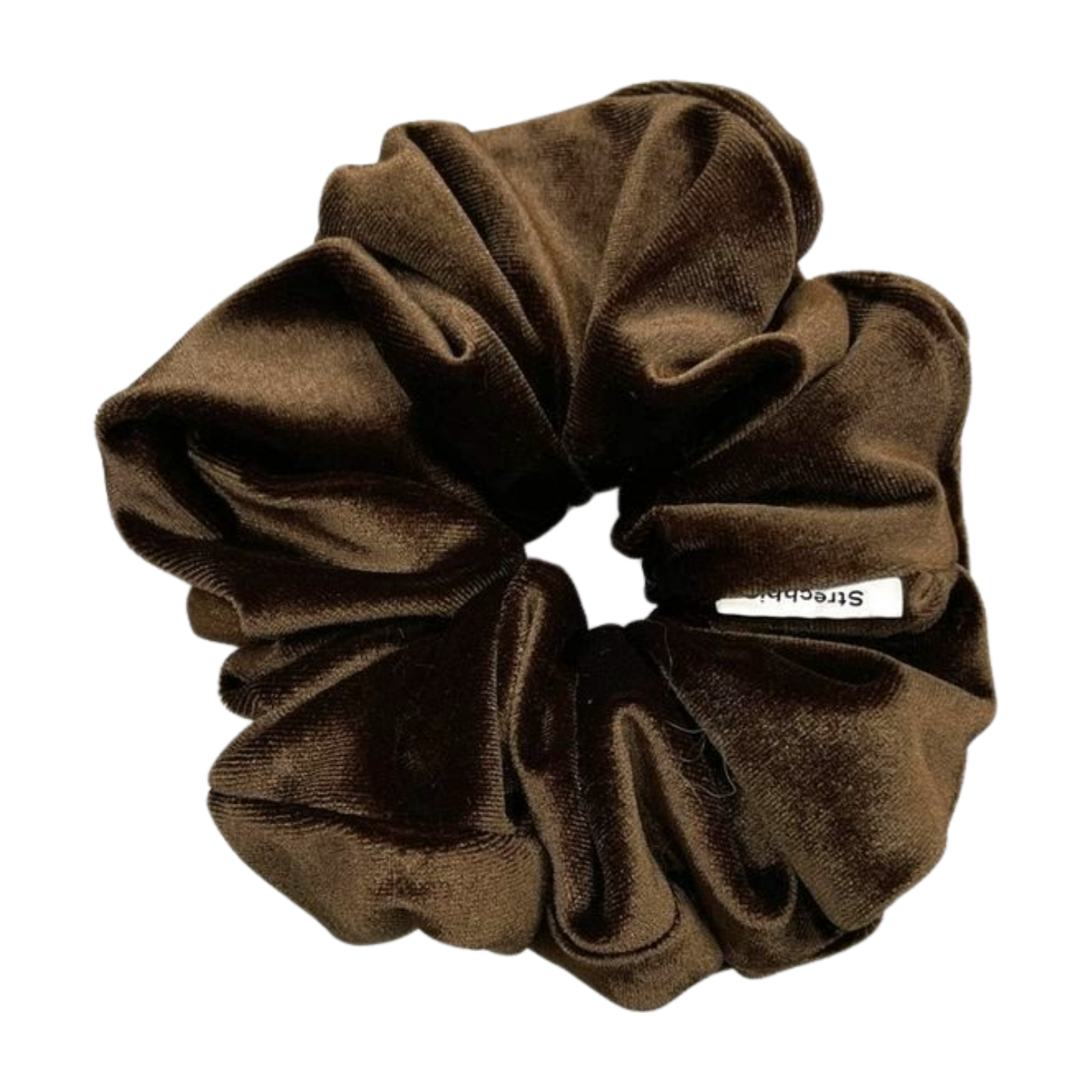 Women’s hair scrunchie made of soft velvet fabric that does not wrinkle the hair, with high elasticity for a strong hold.