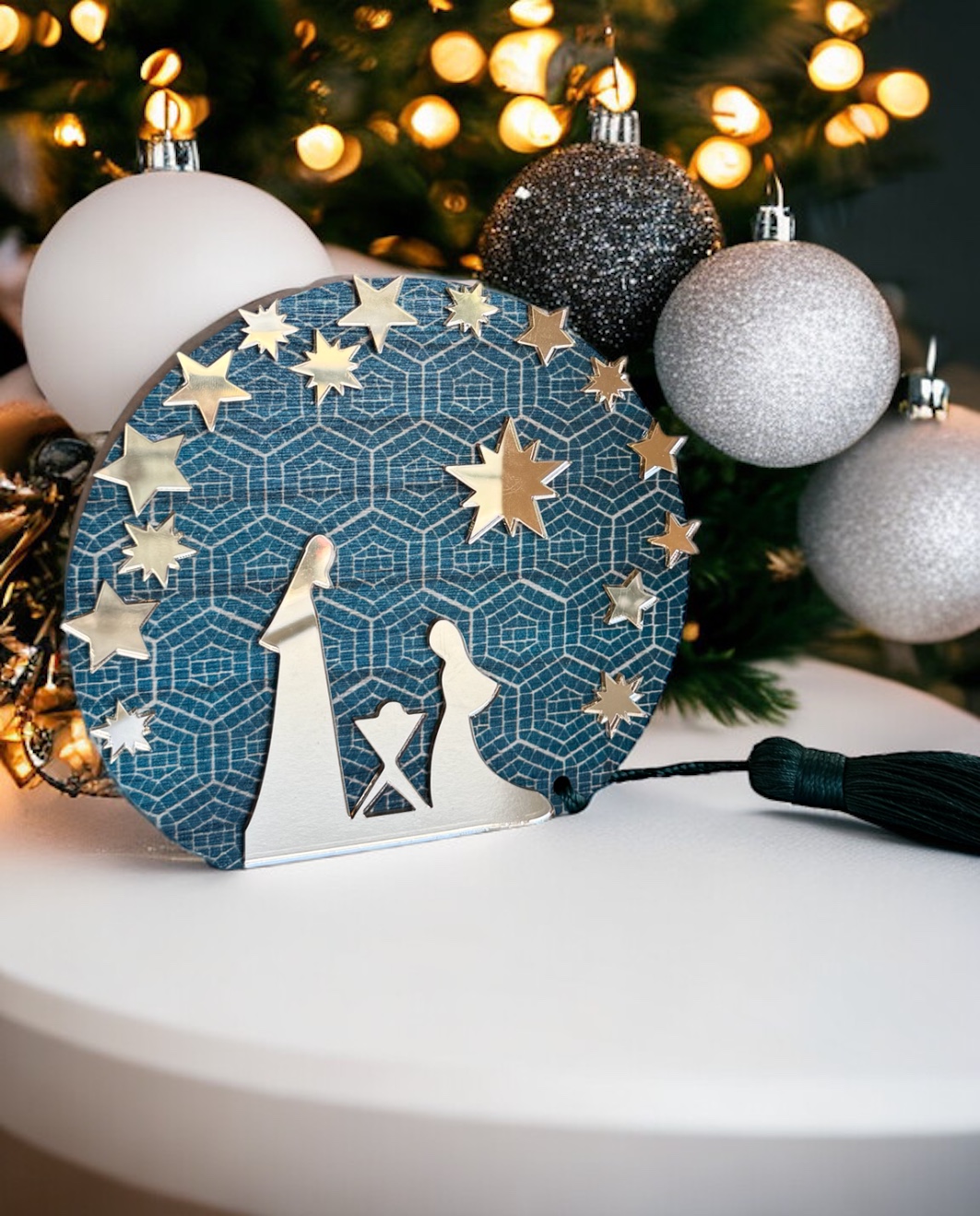 A modern wooden nativity scene charm combines tradition with contemporary design, offering an elegant and timeless decoration for the festive season. The simplicity of the wood, combined with minimal lines and clean details, breathes new life into the classic image of the nativity scene, making the charm ideal for those who love modern style, but want to keep the connection with Christmas symbols. Perfect your gift by adding gift wrapping and a greeting card! All our charms are designed and manufactured by our team in our workshop.