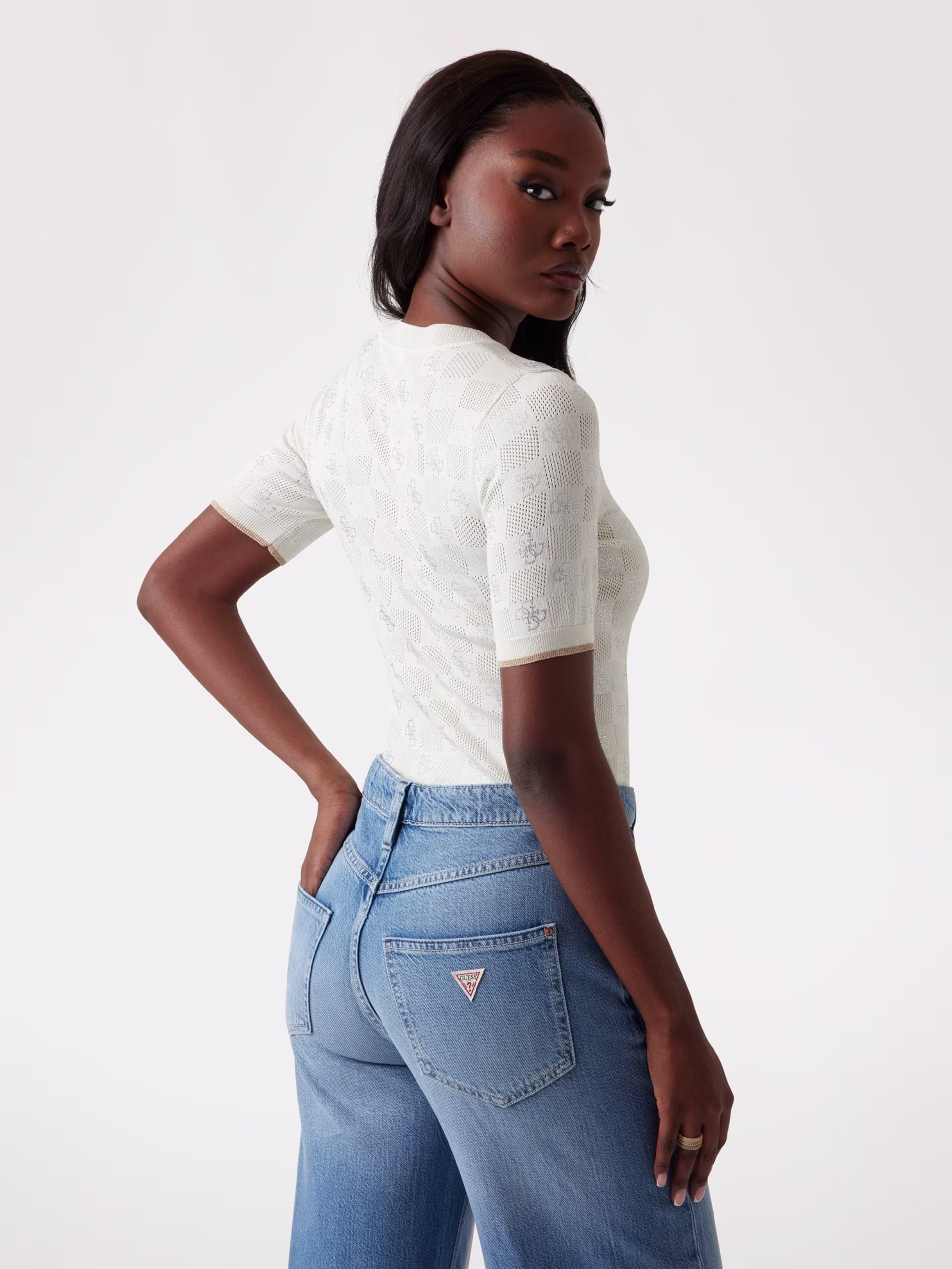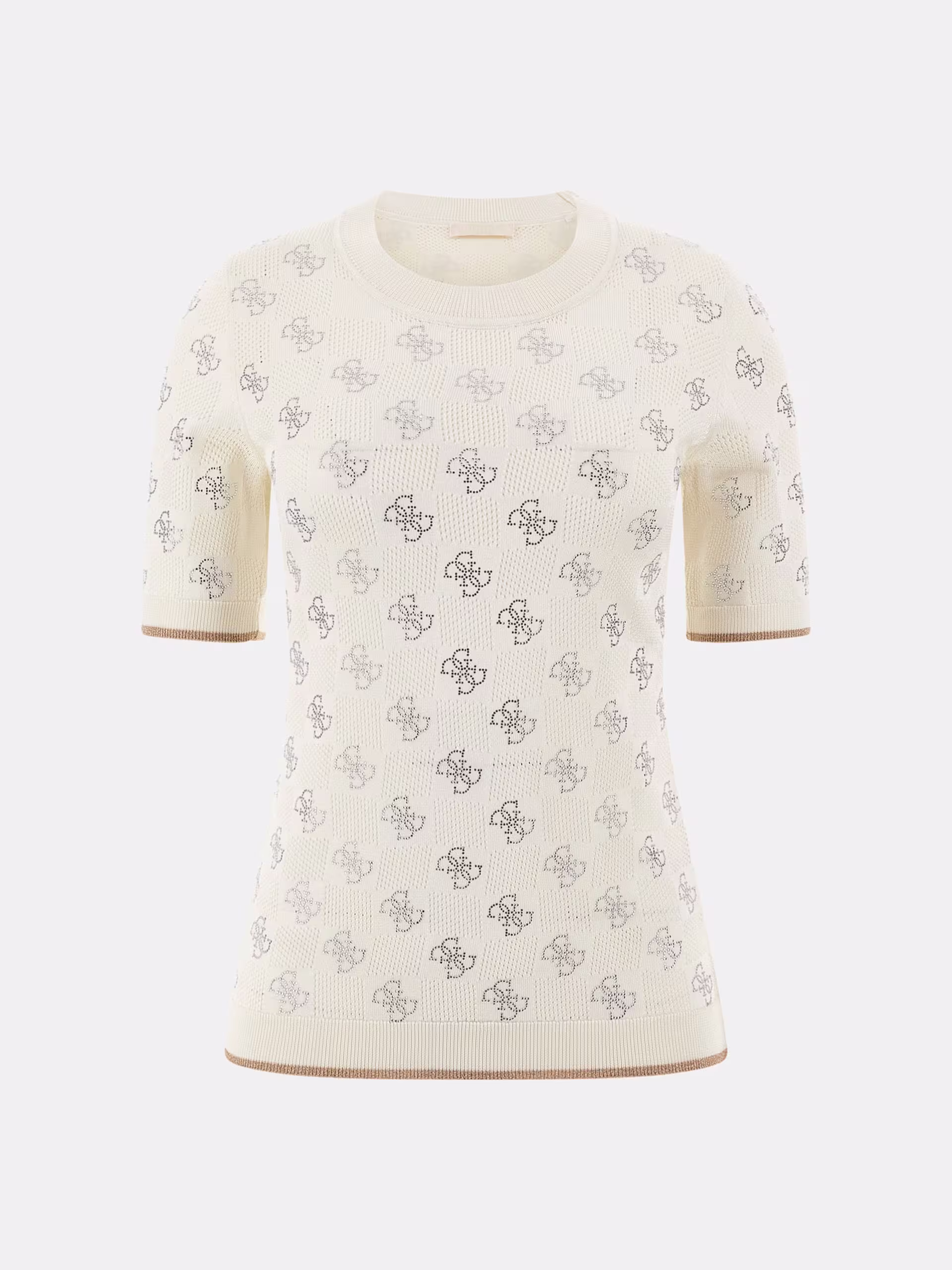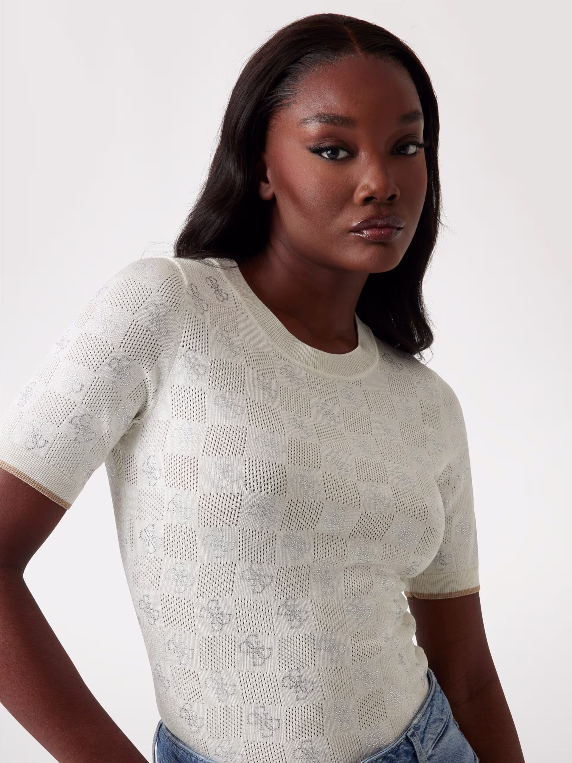 - Knitted sweater made of a viscose blend with an openwork knit.