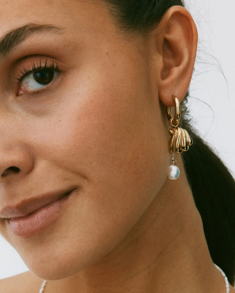 Beach Pearls Hoops Offwhite Gold EDBLAD SS25