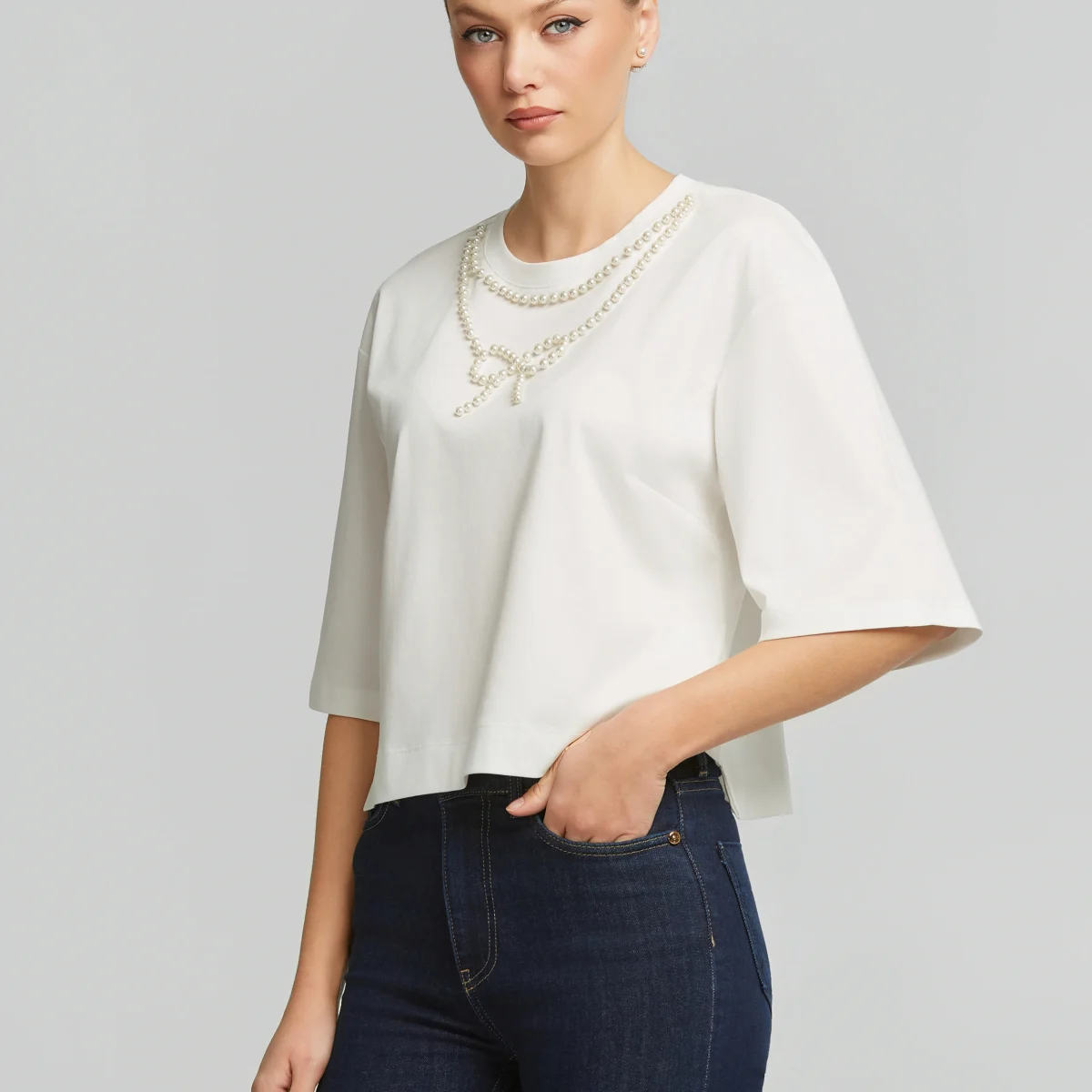Κροπ μπλούζα με πέρλες LYNNE SS26