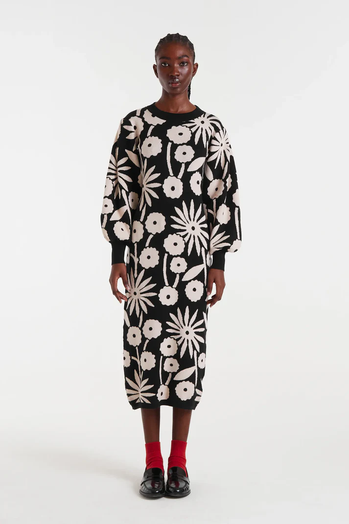 Κοντό πλεκτό φόρεμα ζακάρ με τύπωμα Morango COMPANIA FANTASTICA FW25-26