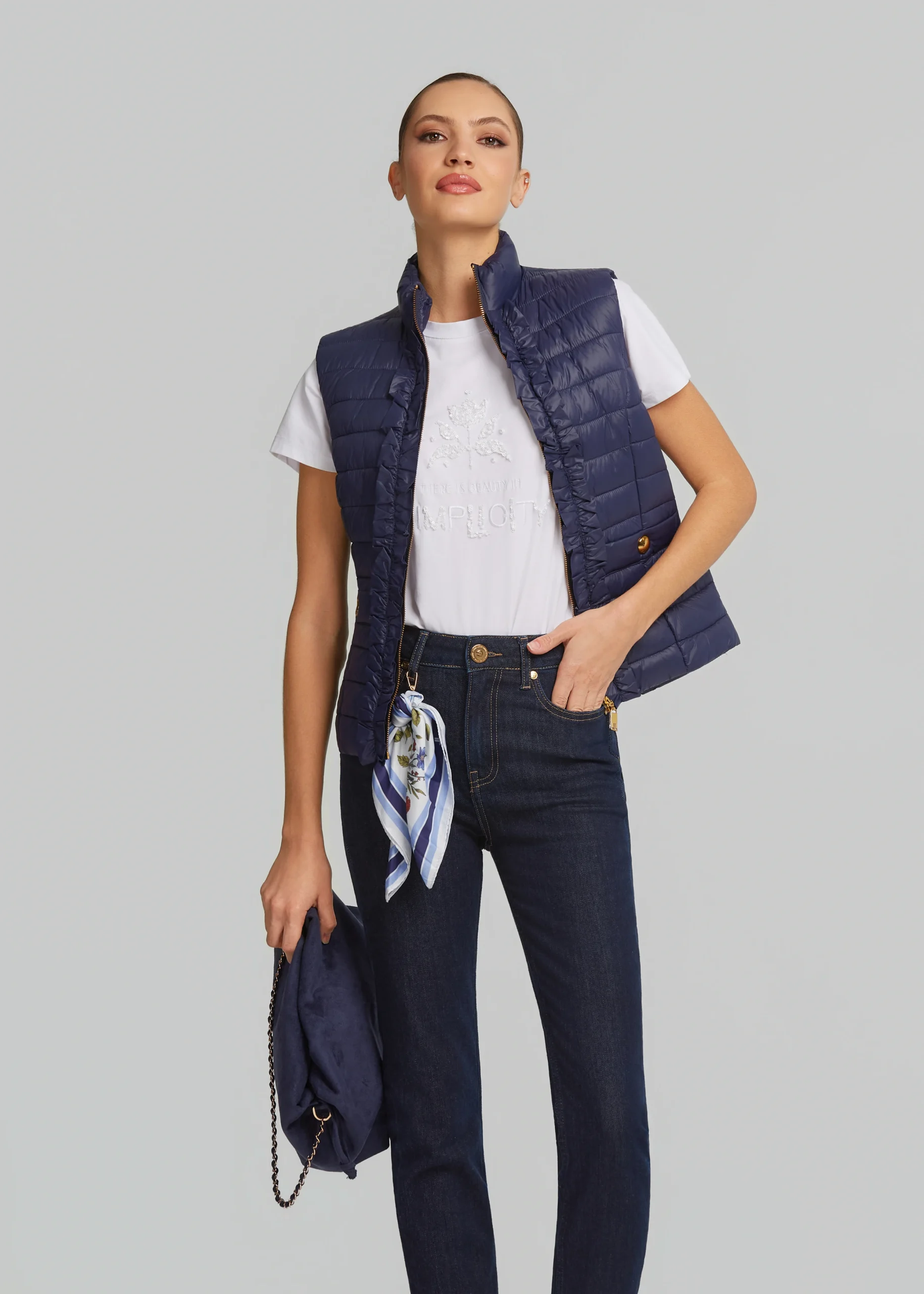 - Αμάνικο μπουφάν με ψηλό γιακά και διακοσμητικό βολάν