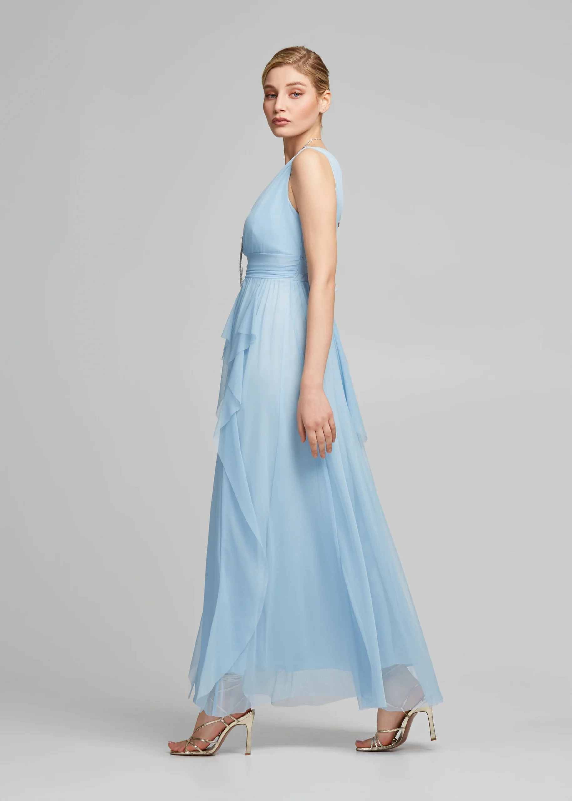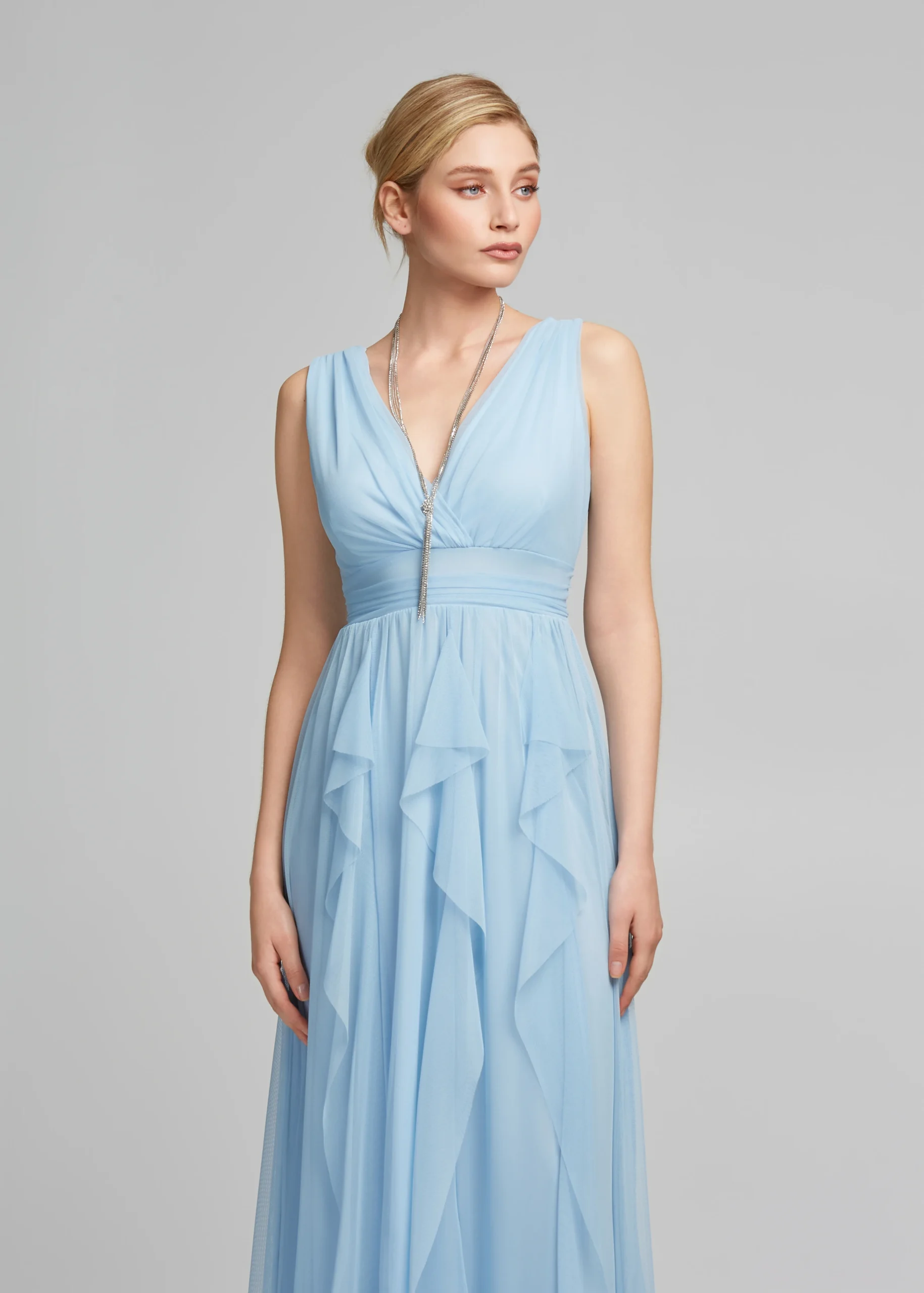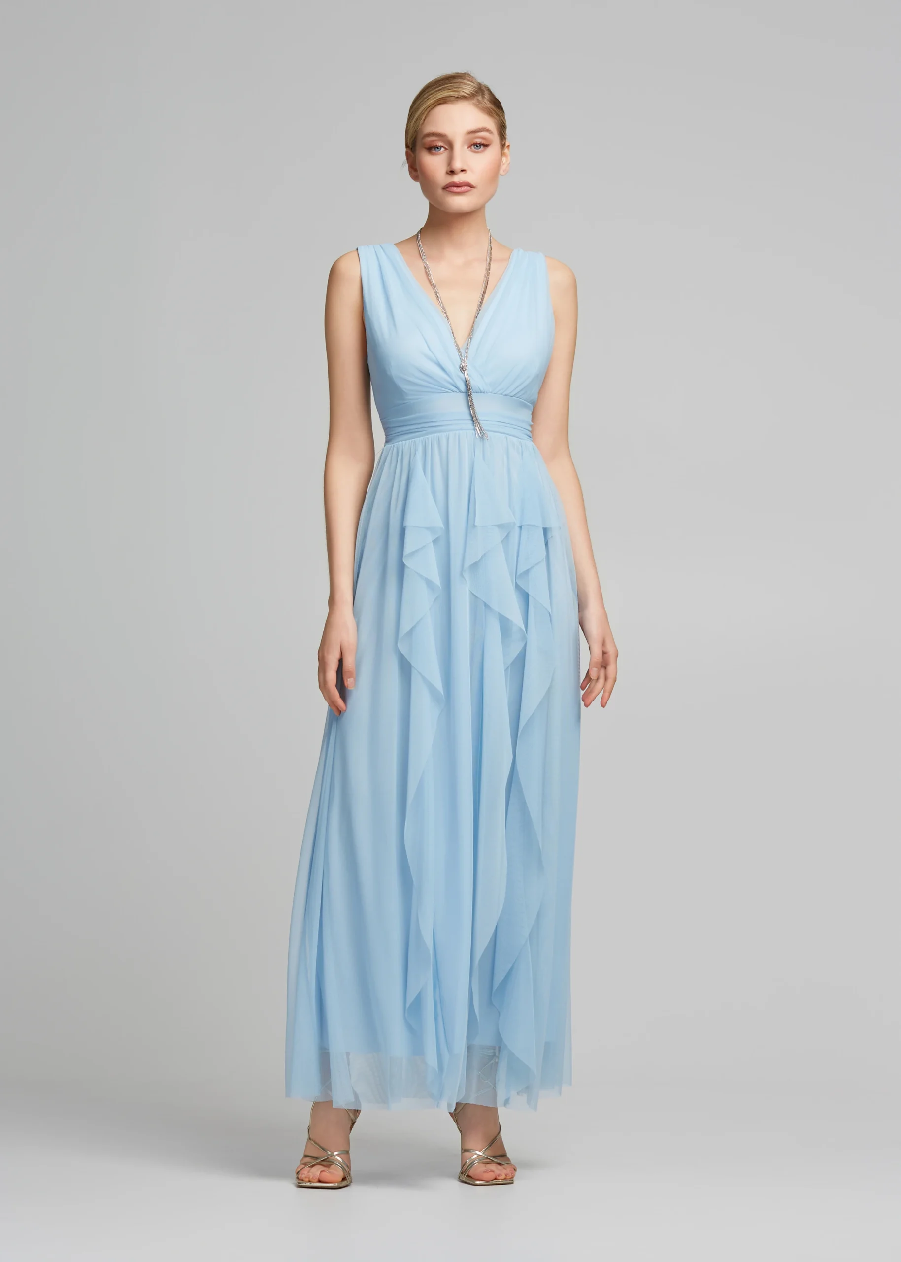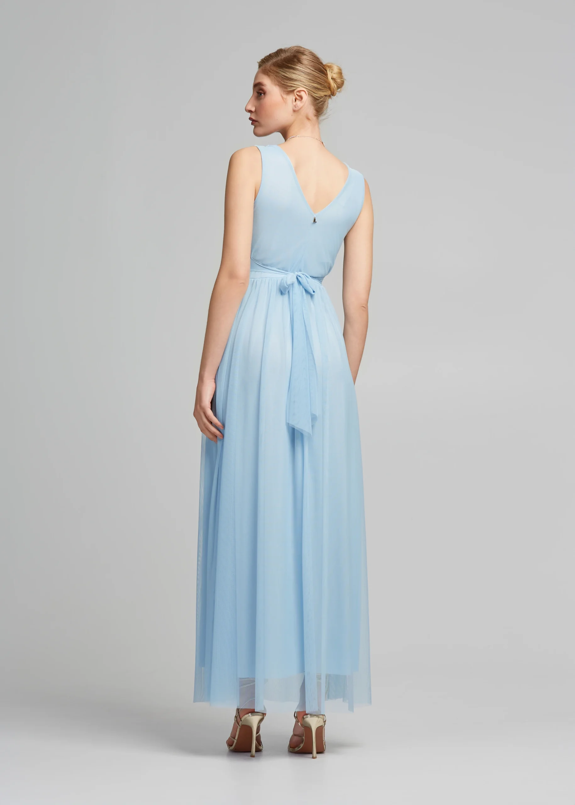 - Φόρεμα μακρύ τούλινο με V ντεκολτέ