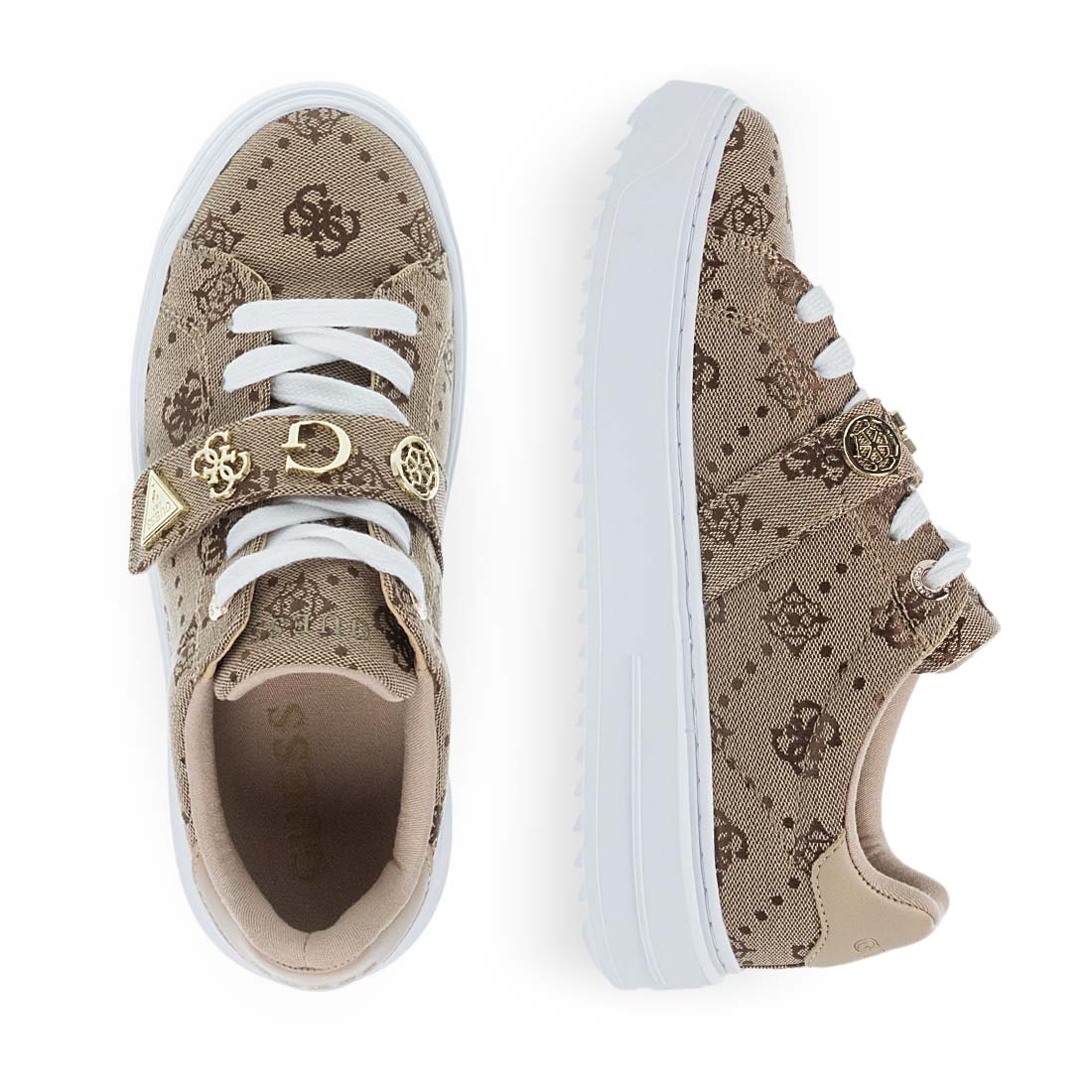 Γυναικεία sneakers Guess, με μοντέρνο design και χαρακτηριστικά χρυσά διακοσμητικά. Από συνθετικό δέρμα, συνδυάζουν πολυτέλεια και άνεση για κάθε casual εμφάνιση.