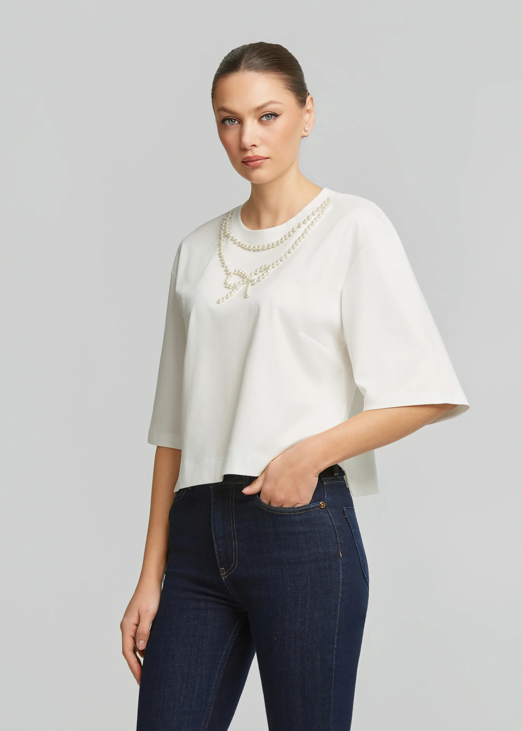 Κροπ μπλούζα με πέρλες LYNNE SS26