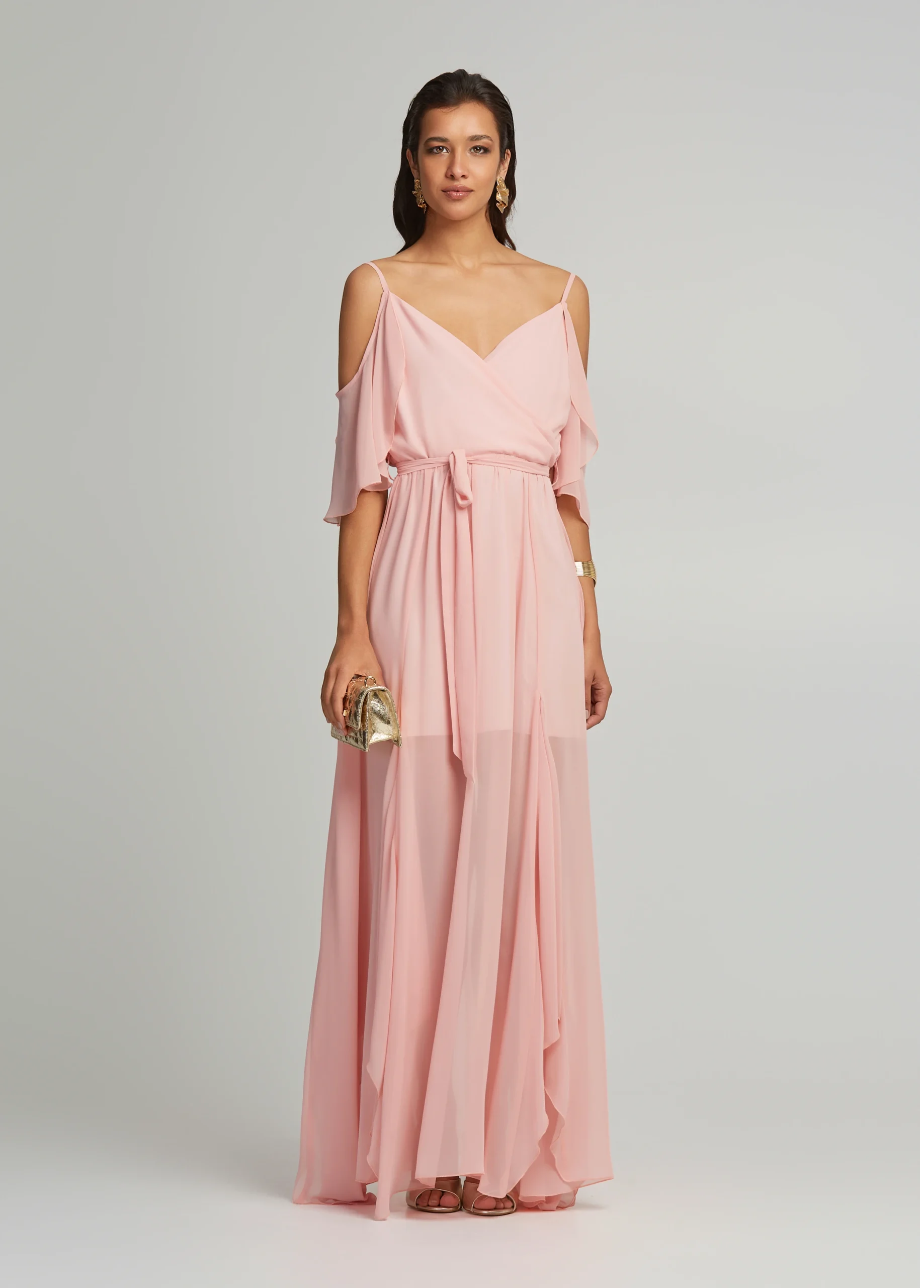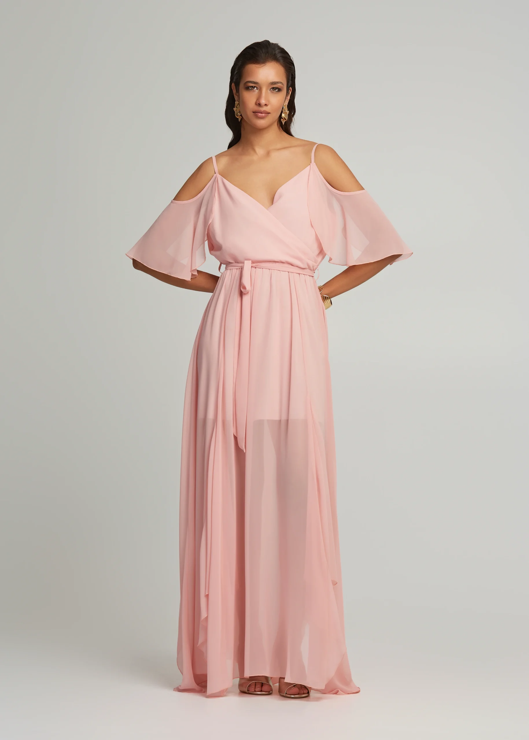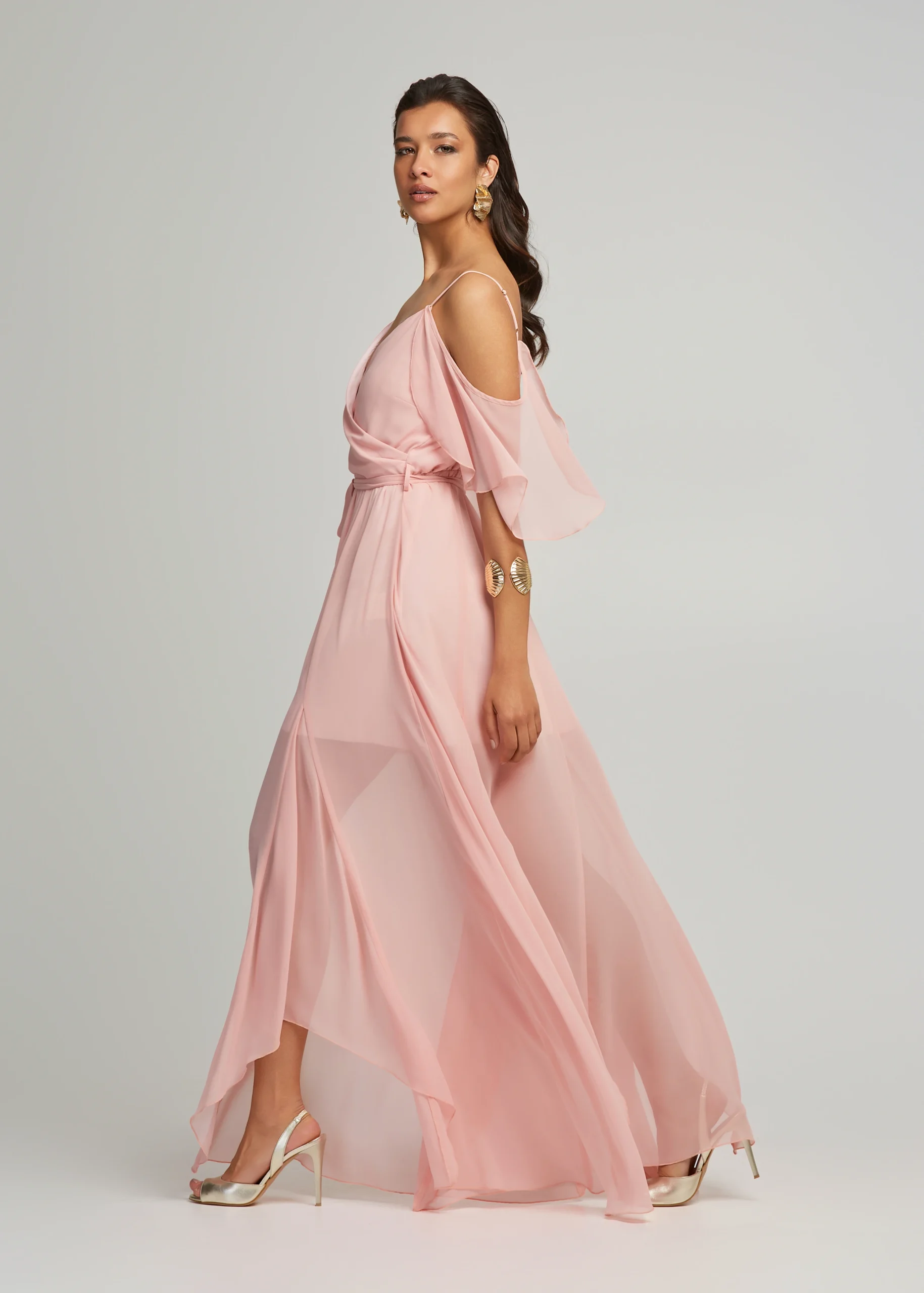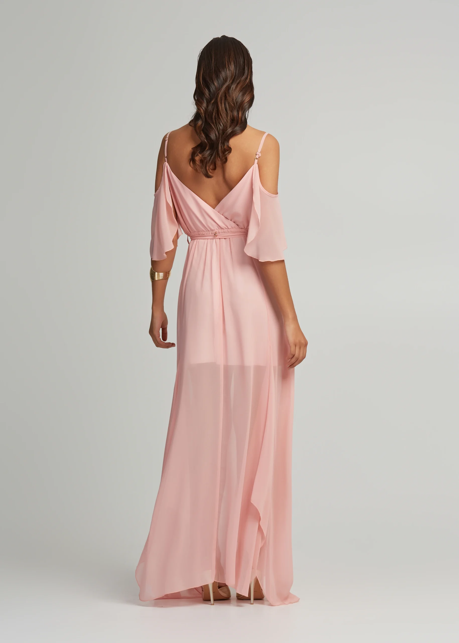 Μάξι φόρεμα διαφάνεια με βολάν μανίκια LYNNE SS25