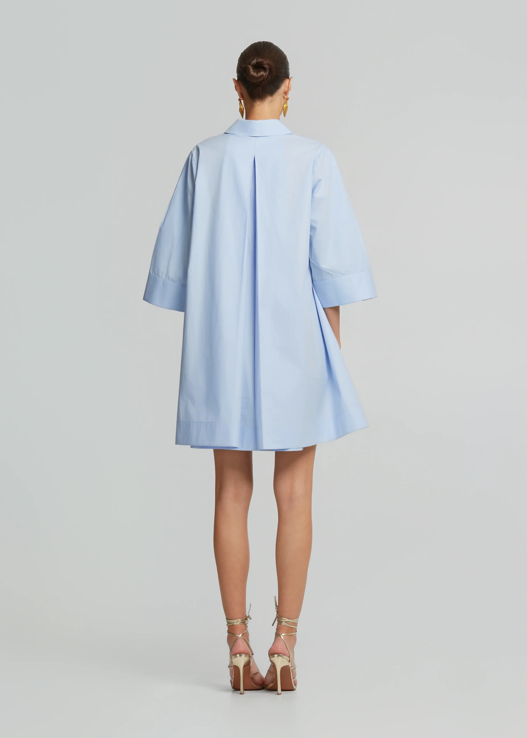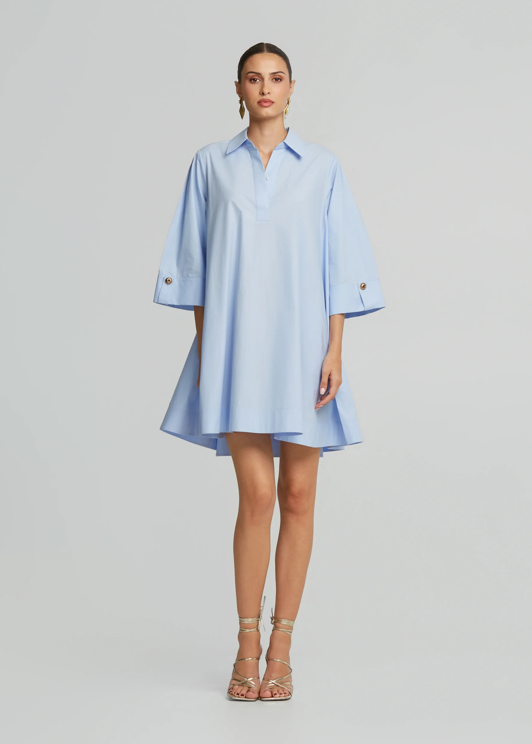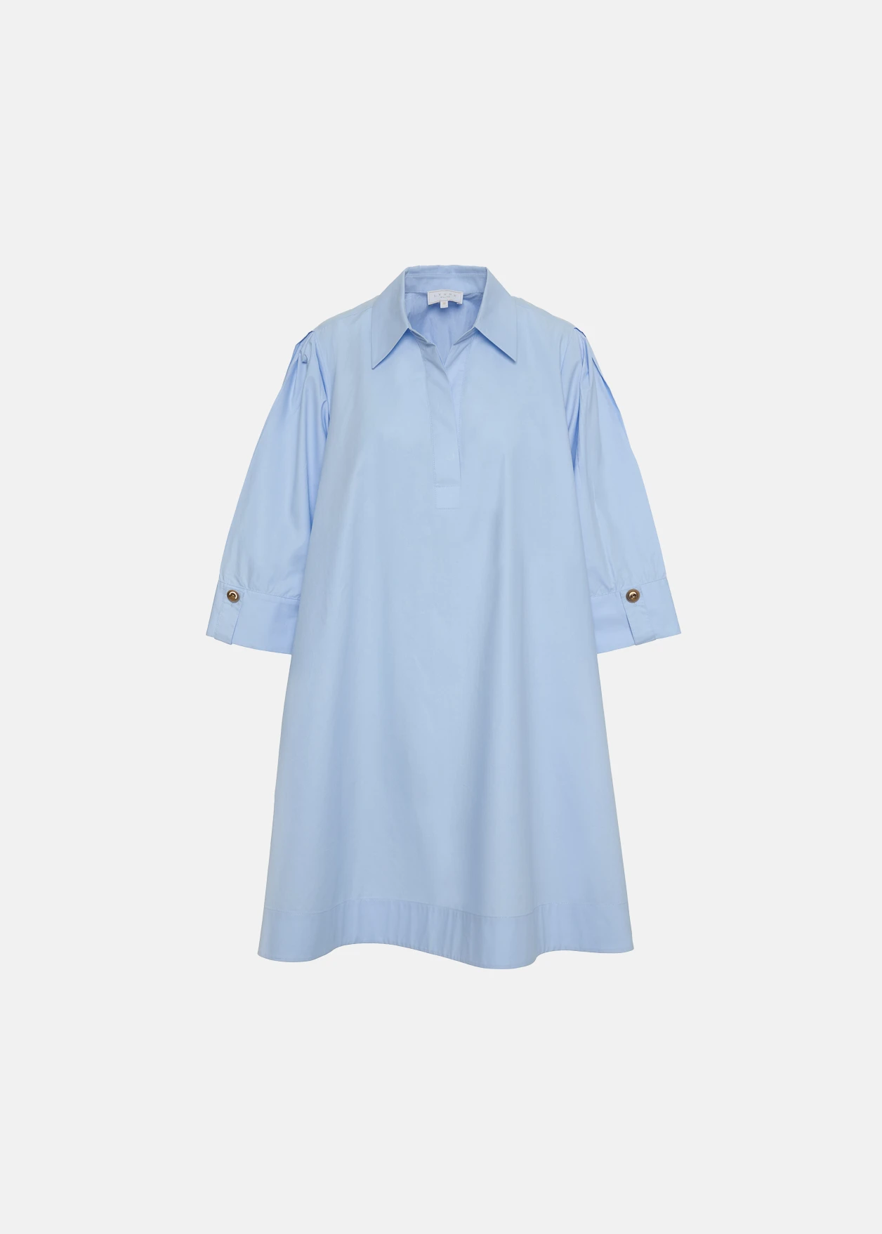 • Μίνι φόρεμα από ποπλίνα με πλαϊνές τσέπες, γιακά και κουμπιά