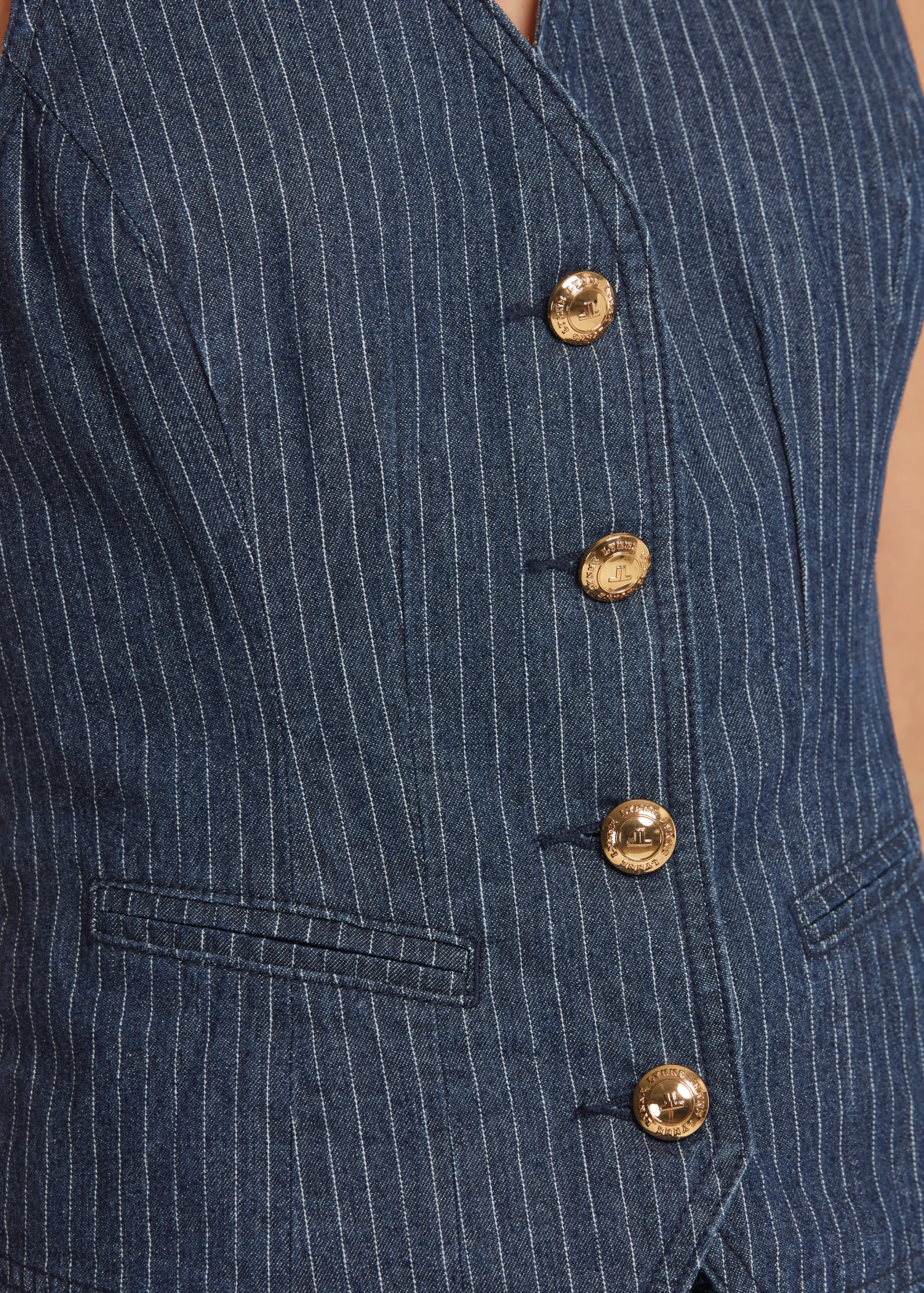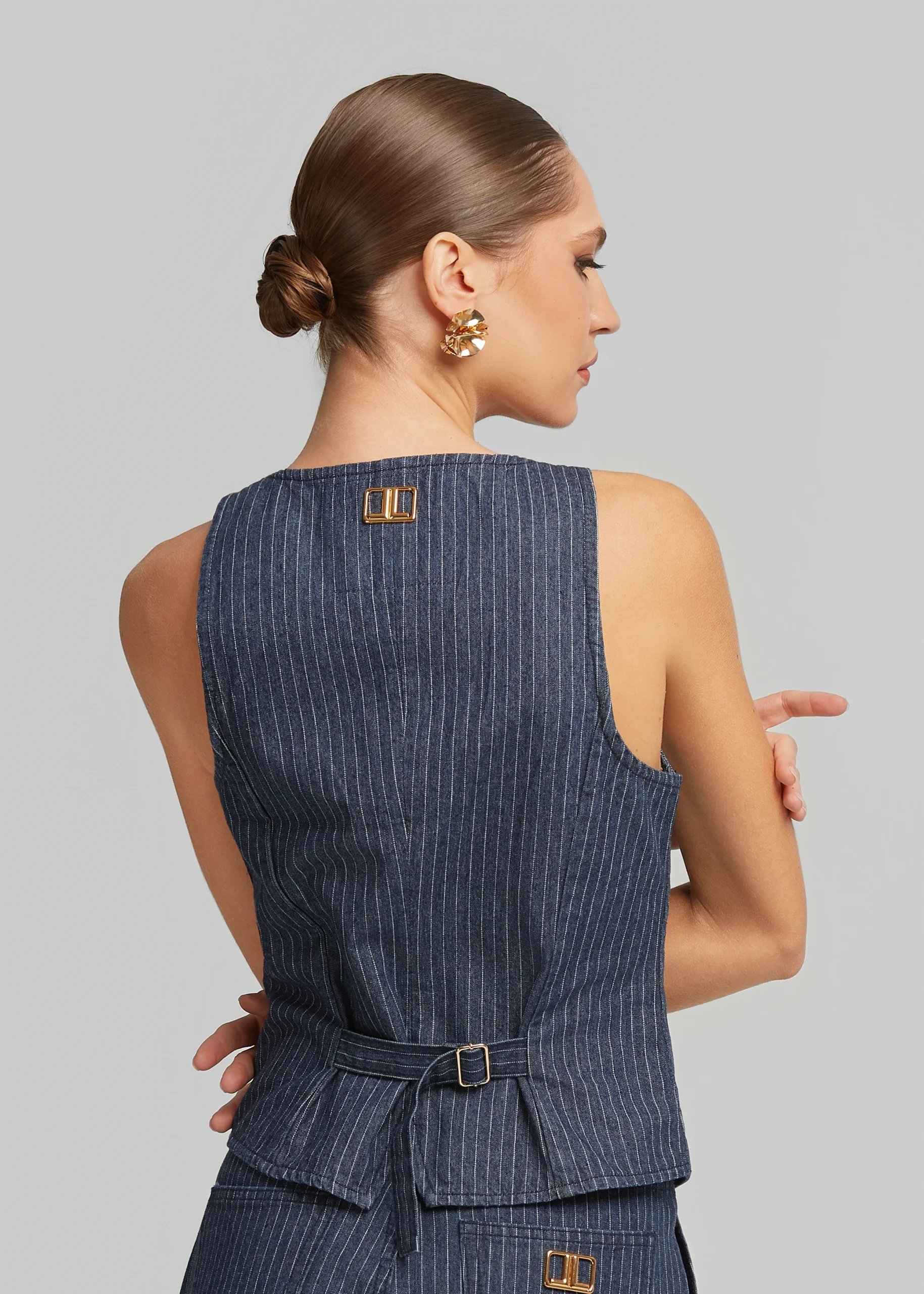 - Τζιν ριγέ γιλέκο με μεταλλικά κουμπιά και ρυθμιζομενη μέση