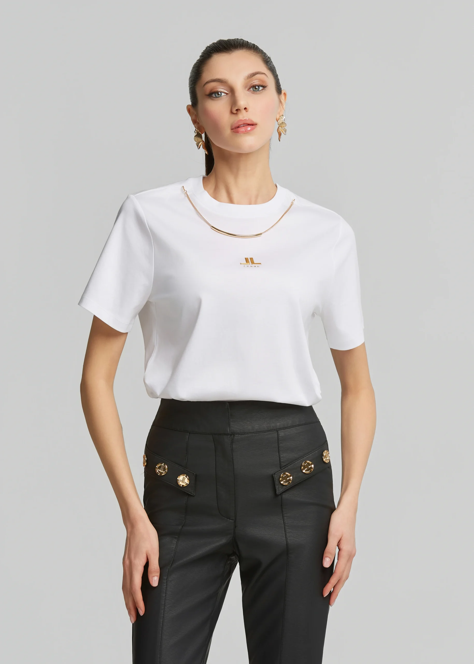 - Βαμβακερή μπλούζα με αποσπώμενη αλυσίδα κόσμημα και Logo